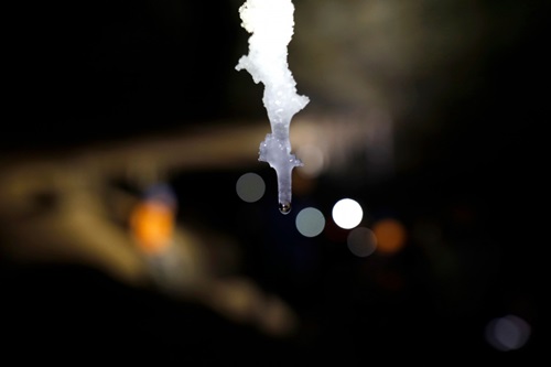 Nước mặn nhỏ giọt từ một nhũ đá muối trong hang Malham bên trong Núi Sodom. Ảnh: Getty |