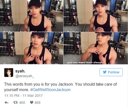 Jackson là một trong những thành viên bận rộn nhất của GOT7 với lịch trình dày đặc cả ở Hàn và Trung của anh. Các fan đều hy vọng anh có thể hồi phục 100% sức khỏe để toàn lực tập trung cho đợt quảng bá mới của GOT7.