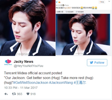 Để thể hiện tình cảm đối với Jackson, người hâm mộ đã trend hastag #GetWellSoonJackson (#MauKhỏeNhéJackson) để ủng hộ và cầu nguyện cho sức khỏe của nam idol nhanh bình phục.