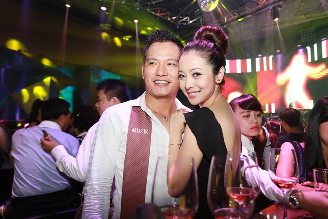 Jennifer Phạm xuất hiện rạng rỡ trong buổi khai trương cơ sở kinh doanh mới của chồng, đó là một phòng trà ca nhạc giữa trung tâm Hà Nội.