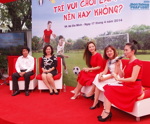 | Cô đảm nhận vai trò khách mời giao lưu cùng bác sĩ tâm lý Nguyễn Minh Tiến, Tiến sĩ tâm lý Nguyễn Thị Bích Hồng cùng đại diện các cơ quan truyền thông và các bậc phụ huynh. |