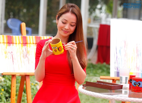 (ĐSPL) – Hoa hậu Jennifer Phạm yểu điệu ngồi vẽ tranh khi tham gia một sự kiện tại TP.HCM ngày 17/4.