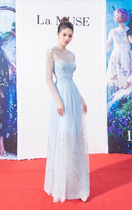 Người đẹp diện một bộ cánh pastel phom dáng bay bổng của NTK Tùng Vũ, được đính kết tỉ mỉ đầy chất thơ. Kết hợp mái tóc búi cao gọn gàng tôn đường nét thanh tú gương mặt, Jolie Nguyễn trông xinh đẹp như một nàng công chúa bước ra từ cổ tích.