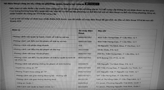 Để rõ hơn về số điện thoại+800693187797 tự xưng là hotline của Công an TP.HCM, PV đã liên hệ Công an TP.HCM và được vị đại diện hướng dẫn truy cập vào website của Công an TP.HCM để xác minh. Qua kiểm tra, PV ghi nhận tại đây, có danh bạ điện thoại của các đơn vị, phòng ban chức năng, tuy nhiên không hề có bất cứ số điện thoại nào như nêu trên.