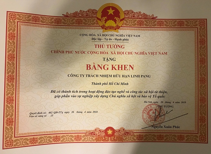 Cô Pang Mỹ Linh nhận bằng khen của Thủ tướng |