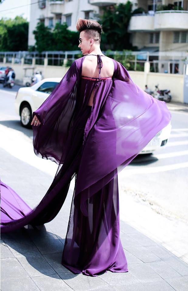 Cùng với dòng chia sẻ, anh chàng tung hình ảnh mình diện chiếc váy cổ trang tím từng mặc tham gia casting Thách thức danh hài cách đây không lâu.