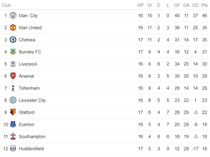 | Bảng xếp hạng giải Ngoại hạng Anh |