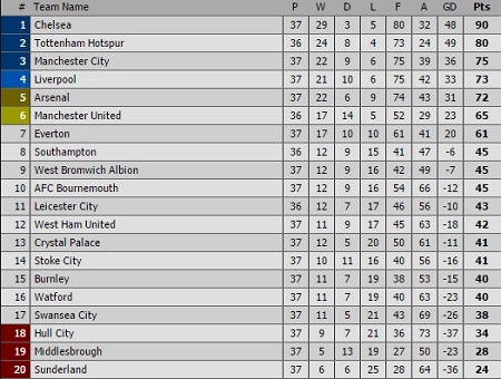 Sau giờ nghỉ, Arsenal phải nhờ đến sự tỏa sáng của Sanchez, Ozil mới có thể đánh bại được Sunderland. 3 điểm có được ở trận đấu này giúp Arsenal thu hẹp cách biệt với Liverpool xuống còn 1 điểm. Vòng đấu cuối cùng, Arsenal sẽ gặp Everton trong khi Liverpool gặp Middlesbrough.