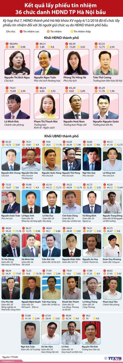 Kỳ họp thứ 7, HĐND thành phố Hà Nội khóa XV ngày 6/12/2018 đã tổ chức lấy phiếu tín nhiệm đối với 36 người giữ chức vụ do HĐND thành phố bầu.