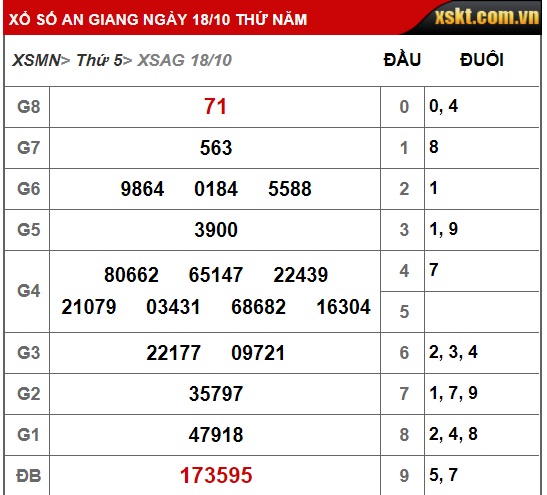 Kết quả xổ số An Giang hôm nay 18/10/2018 |