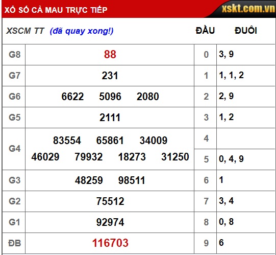 Kết quả xổ số Cà Mau hôm nay 5/11/2018. |