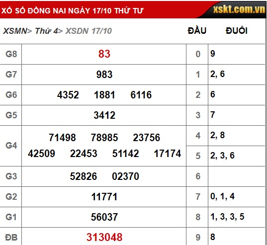 Kết quả xổ số Đồng Nai ngày 17/10