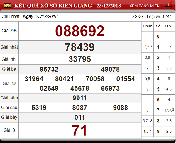 Kết quả xổ số Kiên Giang hôm nay 30/12/2018