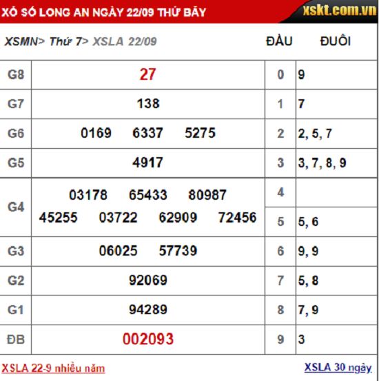 Kết quả xổ số Long An hôm nay 22/9/2018