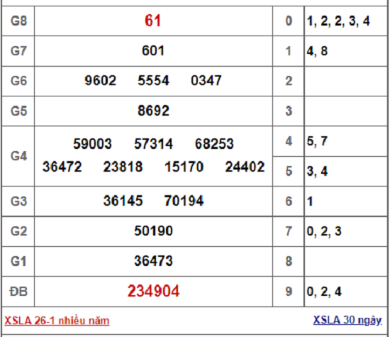 Kết quả xổ số Long An hôm nay 26/1/2019