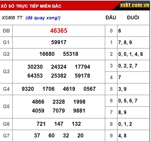 Kết quả xổ số miền Bắc hôm nay 17/12/2018. |