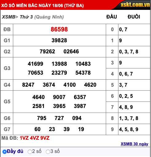 Kết quả xổ số miền Bắc hôm nay 18/6/2019:
