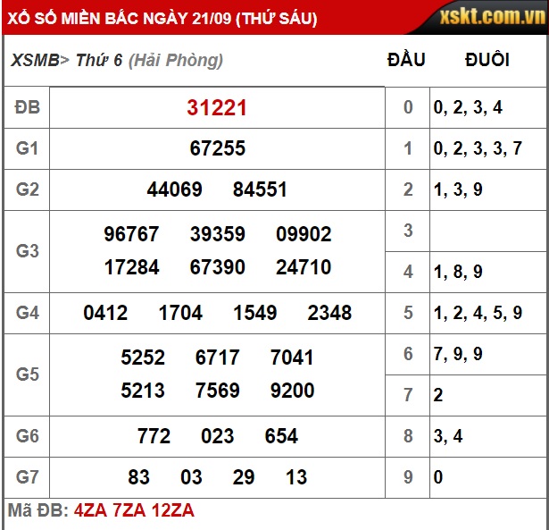 Kết quả xổ số miền Bắc hôm nay 21/9/2018. |