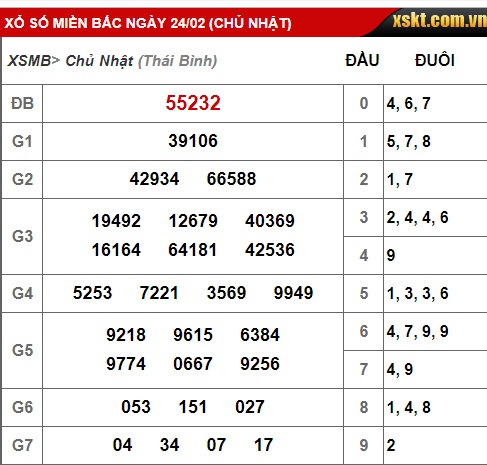 Kết quả xổ số miền Bắc hôm nay 24/2/2019. |