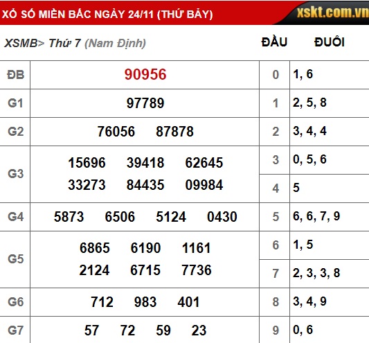 Kết quả xổ số miền Bắc hôm qua 24/11/2018