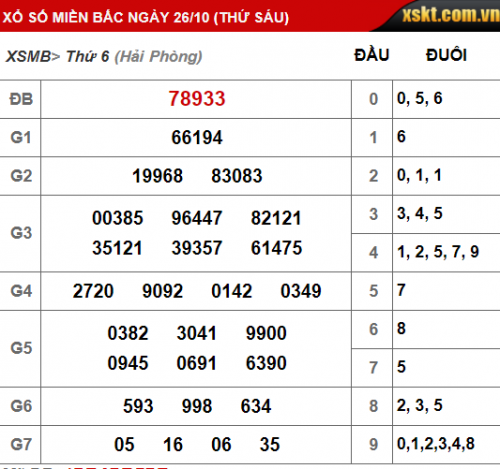 Kết quả xổ số miền Bắc ngày 26/10/2018 |