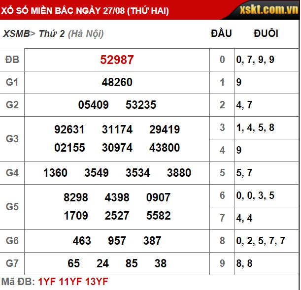 Kết quả xổ số miền Bắc hôm nay 27/8/2018 |