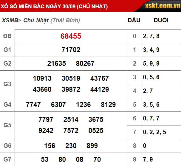 Kết quả xổ số miền Bắc hôm nay 30/9/2018 |