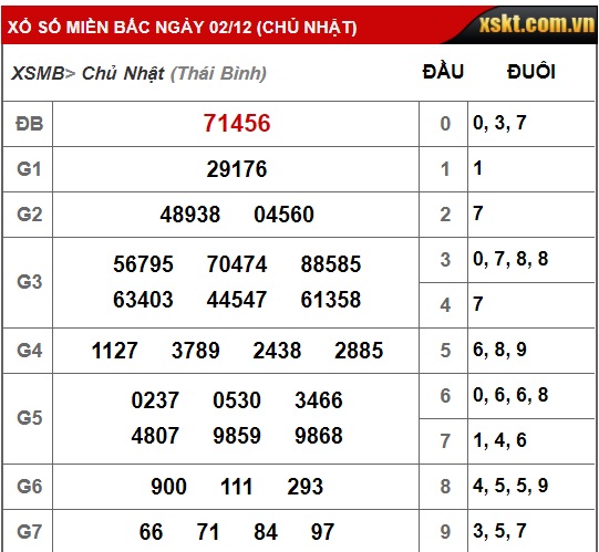 Kết quả xổ số miền Bắc hôm qua 2/12/2018