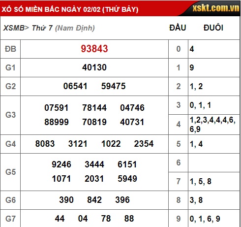 Kết quả xổ số miền Bắc hôm qua 2/2/2019 |