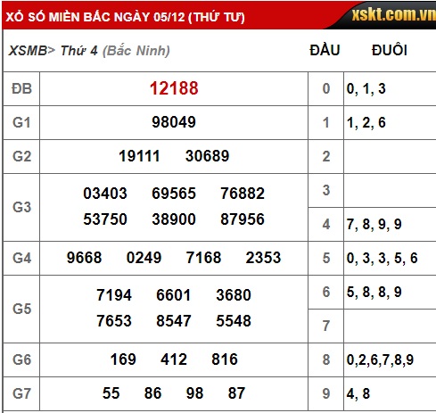 Kết quả xổ số miền Bắc hôm qua 5/12/2018 |