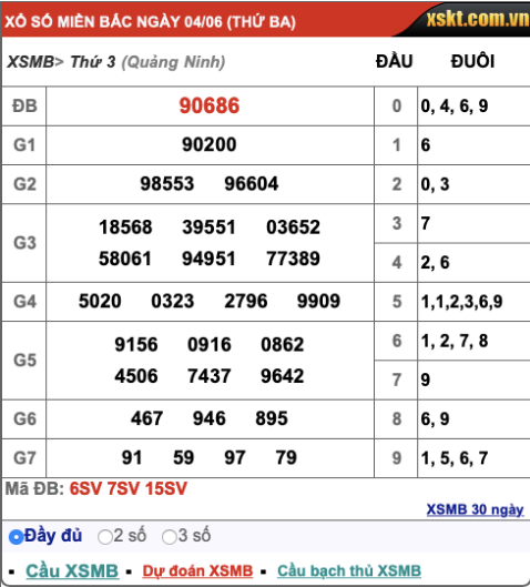 Kết quả xổ số miền Bắc hôm nay 6/6/2019: