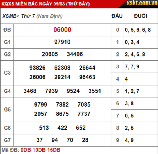 Kết quả xổ số miền Bắc hôm nay 9/3/2019