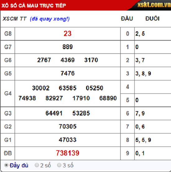 Kết quả xổ số Cà Mau hôm nay 10/9/2018: