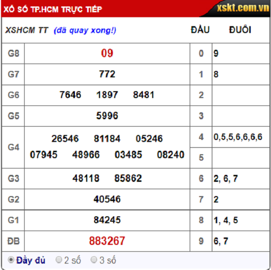 Kết quả xổ số TP.HCM hôm nay 10/9/2018: