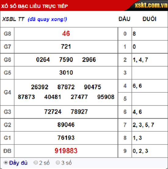 Kết quả xổ số Bạc Liêu hôm nay 18/9/2018