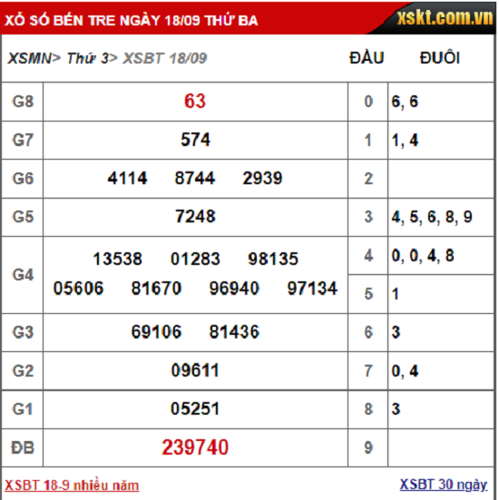 Kết quả xổ số Bến Tre hôm nay 18/9/2018