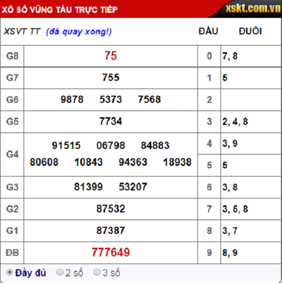 Kết quả xổ số Vũng Tàu hôm nay 18/9/2018
