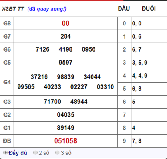 Lô tô tự chọn 2 số và 3 số