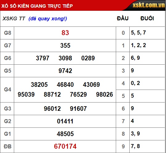 Kết quả xổ số Kiên Giang hôm nay 21/10/2018