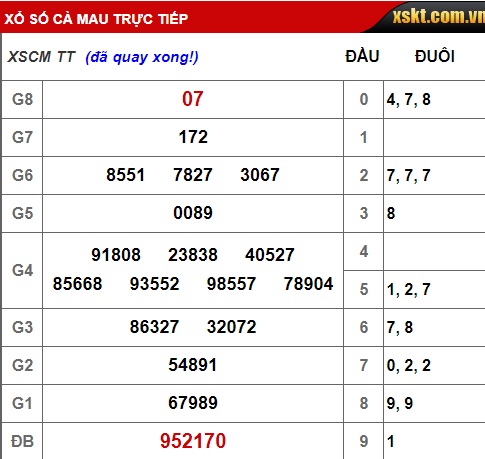Kết quả xổ số Cà Mau hôm nay 4/3/2019