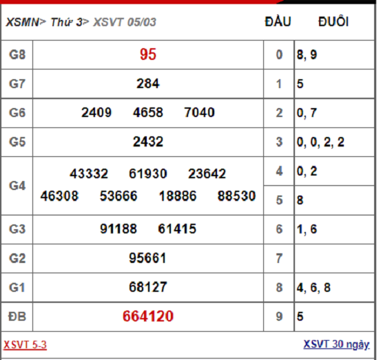 Kết quả xổ số Vũng Tàu hôm nay 5/3/2019