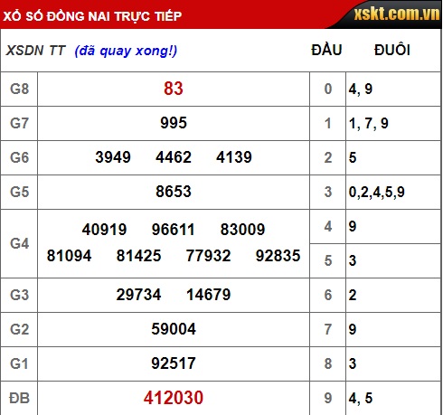 Kết quả xổ số Đồng Nai hôm nay 6/3/2019
