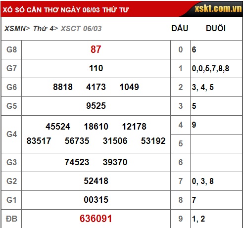 Kết quả xổ số Cần Thơ hôm nay 6/3/2019