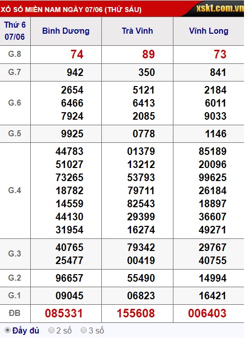 Kết quả xổ số Bình Dương, Trà Vinh, Vĩnh Long, hôm qua 7/6/2019: