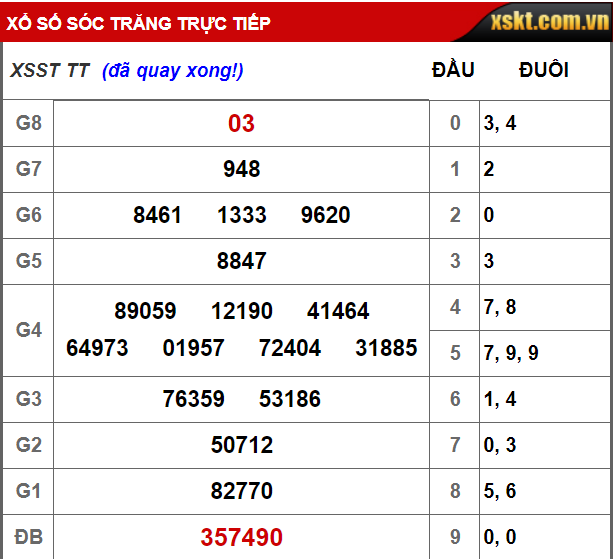 Kết quả xổ số Sóc Trăng ngày 3/10
