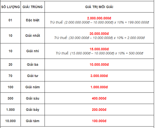 Cơ cấu giải thưởng xổ số kiến thiết miền Nam