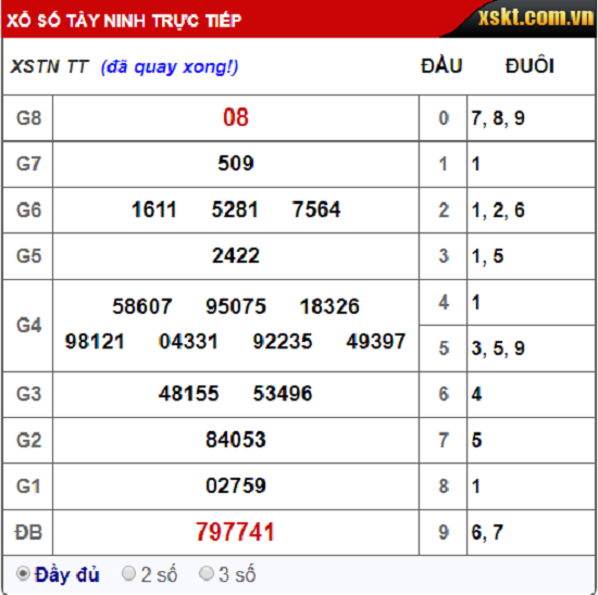 Kết quả xổ số Tây Ninh hôm nay 7/3/2019. Cập nhật kết quả xổ số Tây Ninh nhanh và chính xác nhất trên trang Đời sống & Pháp luật.