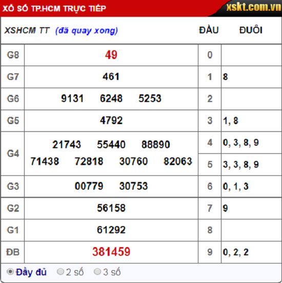 Kết quả xổ số TP.HCM hôm nay 15/12/2018. Cập nhật kết quả xổ số TP.HCM nhanh và chính xác nhất trên trang Đời sống & Pháp luật.