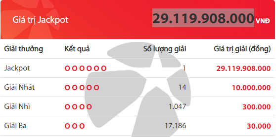 Theo quy định Vietlott, do kỳ quay 464 đã không tìm ra chủ nhân của giải độc đắc nên số tiền hơn 29 tỷ đồng sẽ được cộng dồn vào kì quay thưởng tiếp theo. Nếu cộng thêm doanh thu bán vé, chủ nhân giải Jackpot trong kỳ quay thưởng 465 có thể nhận được số tiền hơn 31 tỷ đồng.