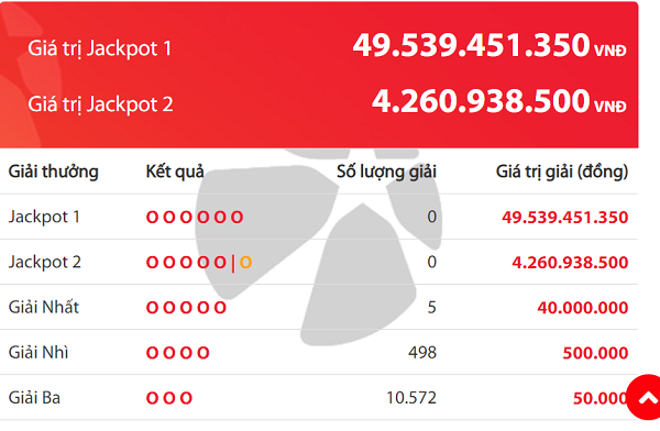 Theo thể lệ Vietlott, do kỳ quay thưởng 214 đã không tìm ra chủ nhân của giải độc đắc nên số tiền 49.539.451.350 đồng sẽ được cộng dồn vào giải Jackpot trong kỳ quay thưởng tiếp theo. Nếu cộng thêm tiền bán vé số, chủ nhân giải Jackpot 1 trong kỳ quay thưởng tới đây có thể nhận được số tiền lên đến 51 tỷ đồng. Chi tiết số người trúng xổ số Vietlott ngày 13/12.
